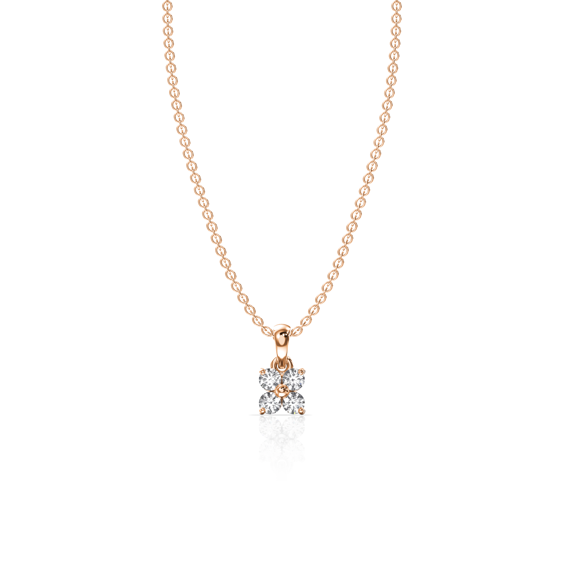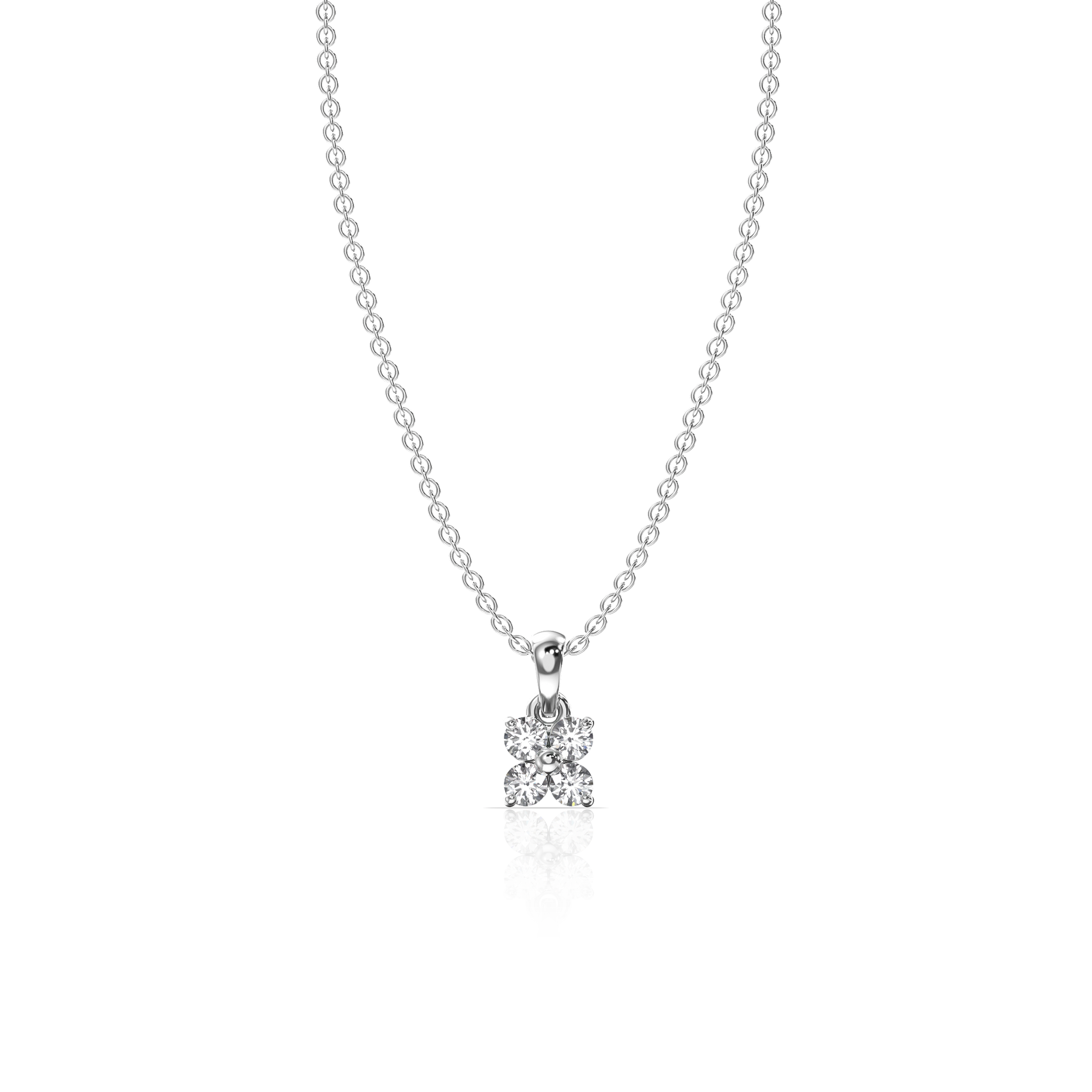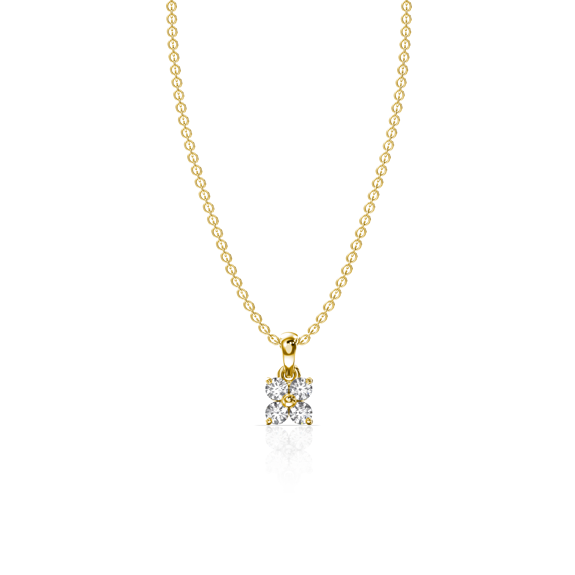 The Floral Square Pendant is an elegant piece crafted in 18k gold, featuring a unique square-flower motif. This design is created with four sparkling round diamonds, totaling 0.18 carats, arranged in a prong setting that enhances their brilliance. The diamonds form a delicate floral pattern within a square silhouette, making this pendant a harmonious blend of geometric and natural elegance, perfect for any occasion.